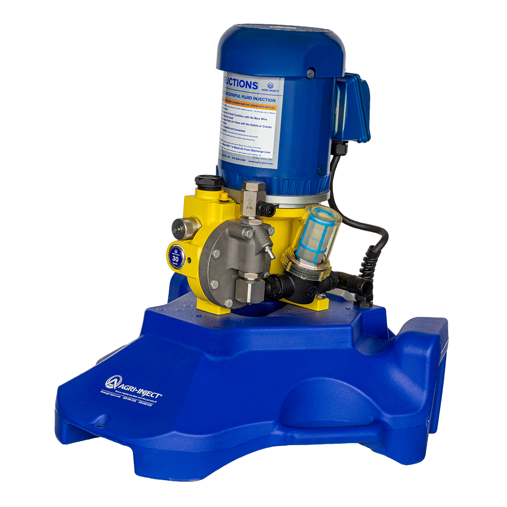 The A30 fertigation system is Agri-Inject's lighter weight, lower volume injection solutions, trusted worldwide for accurate, reliable application of fertilizers and crop inputs through center pivot and other pressurized irrigation systems. With a flow range of 3 to 30 gallons per hour, the A30 offers a cost effective way to apply precise amounts of fertilizer and crop protection products at precisely the right times throughout the growing season.